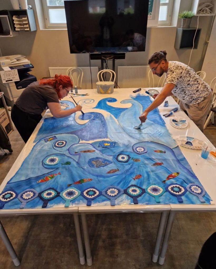 As part of the Söderscen initiative in Helsingborg, we created new dresses for the city’s trees. The final pieces emerged from a series of four workshops over the span of a month, involving over a hundred children and adults from the local community. Using children’s drawings on small fabric pieces, we upcycled these artworks to craft two tree dresses. The designs symbolize Helsingborg’s sea and the imagined marine life envisioned by its residents.